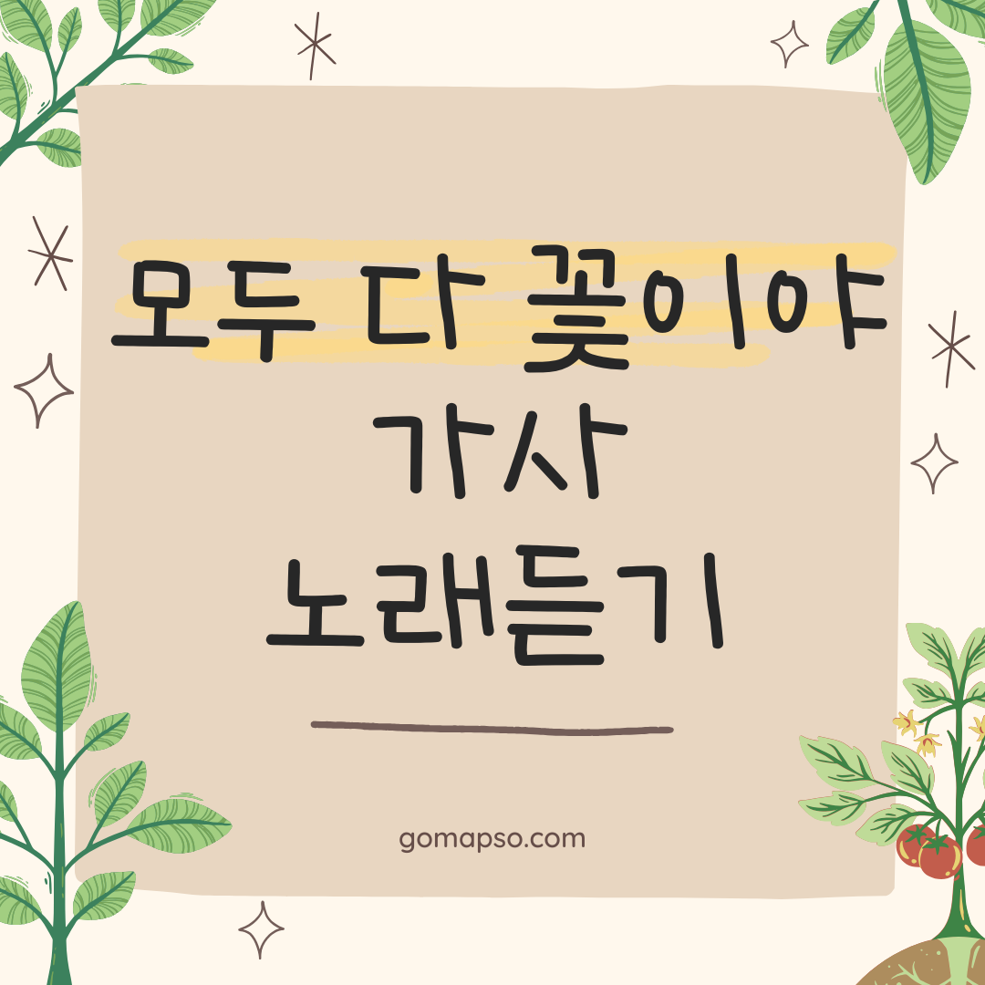 모두 다 꽃이야 라는 국악 동요를 들어 보셨나요? 유치원 아이들이나 초등학생들은 이전부터 많이 접해오던 노래일텐데요, 가사 하나하나를 눈으로 읽어보면 또 다른 매력에 빠지시게 될 것입니다. 모두 다 꽃이야 가사를 쭉 읽어보시면서 노래도 함께 들어보시면 좋을 것 같습니다.