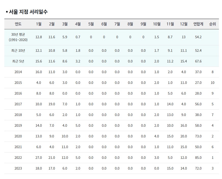 첫서리가 내리는 시기는 대부분 10~11월이고, 꾸준히 서리가 발생하다가 이듬해 봄 4월에 마지막으로 발생하게 됩니다. 서리의 기본 조건인 영하의 기온을 만족하는 겨울철의 시기에 대부분 서리가 발생합니다. 여기서 중요한 것은 서리가 발생하지 않는 무상시기입니다.