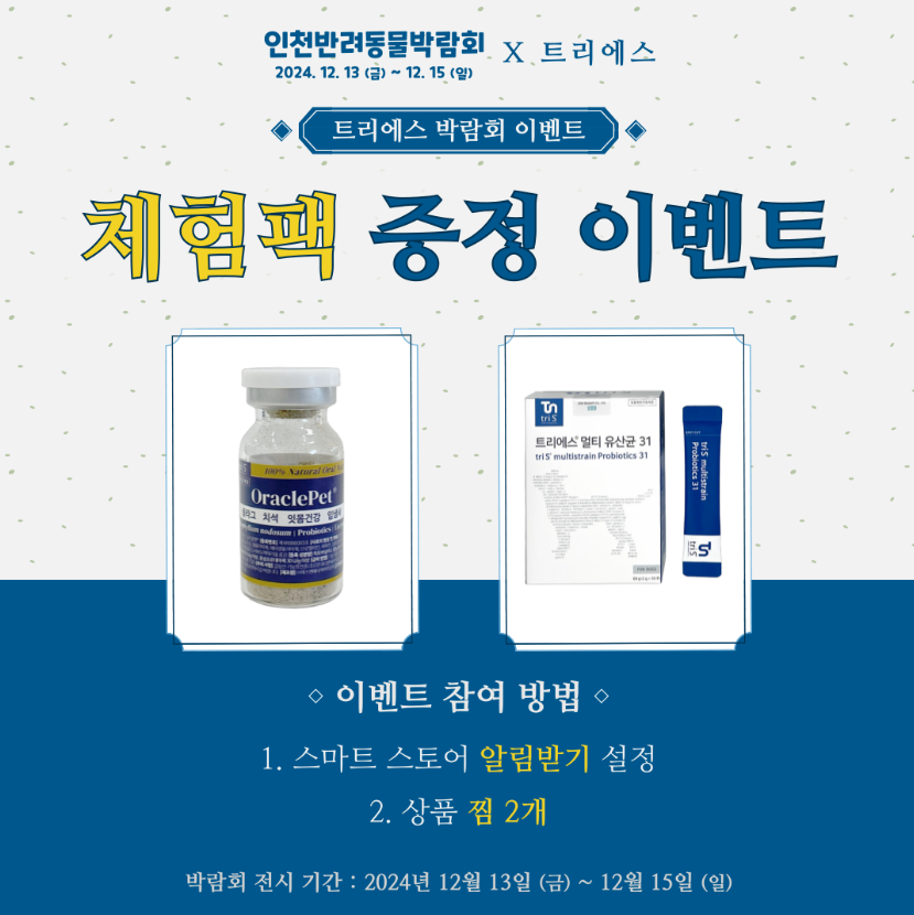 인천반려동물박람회에서는 업체별 이벤트도 하고 있습니다. 원하는 업체가 이벤트를 하고 있는지 확인해 보시고 체험해보시면 좋을 것 같습니다.