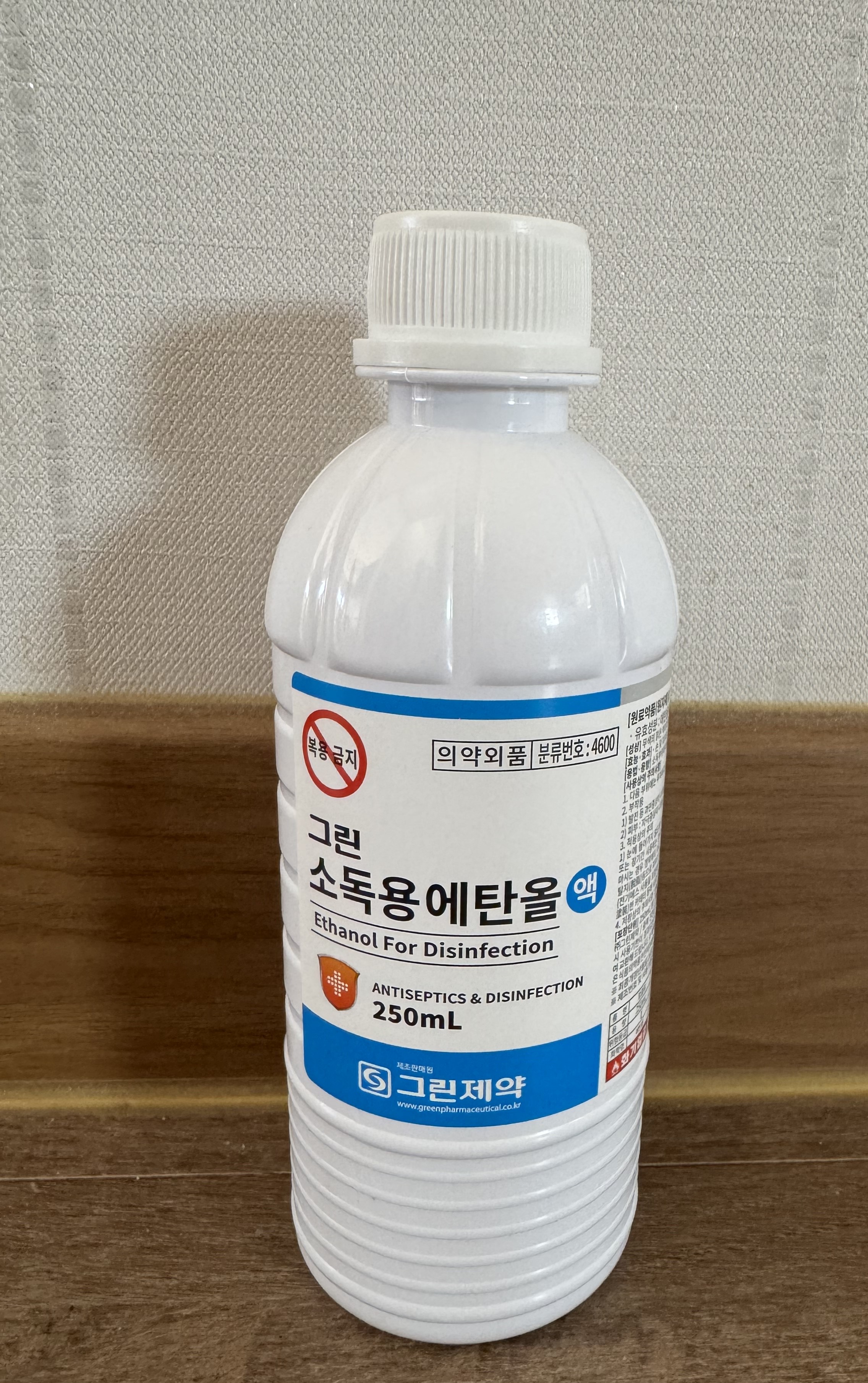 에탄올 2 : 물 1 비율로 만들어 주시면 됩니다. 분무기에 물 3분의 1 정도 채워주시고 나머지를 에탄올로 꽉 채워주시면 됩니다. 정확한 비율이 아니어도 큰 상관 없으니 대강 만들어서 사용해주세요.
