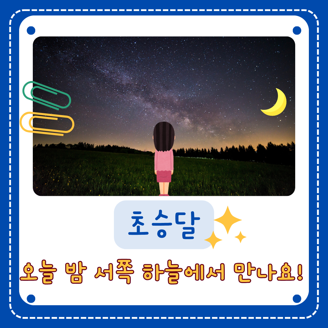 대한민국은 북반구에 위치하고 있기 때문에 지구의 자전으로 인해 태양이나 다른 행성, 별 등 하늘에서 볼 수 있는 것들이 동쪽에서 떠올라 남쪽을 지나 서쪽으로 지는 것처럼 보입니다. 사실은 그 모든 것들은 대부분 가만히 있고, 우리 지구가 서에서 동으로 돌고 있기 때문인걸 자꾸 잊게 되는 것 같습니다. 밤하늘에 보이는 달의 변화는 늘 신비롭습니다. 지난 시간에는 달의 모양 변화에 대해 알아보았는데요, 앞으로 달의 모양에 따른 이름과 그 유래 그리고 재미있는 여러 가지 이야기도 함께 다뤄보겠습니다. 이번 시간에는 '오른쪽 눈썹 - 초승달'에 대해서 좀더 구체적으로 살펴보겠습니다.