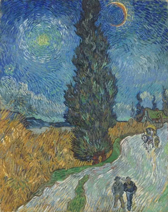 초승달은 명화에서도 종종 활용이 되는데요, 빈센트 반 고흐의 '사이프러스 나무와 별이 있는 길'(1890)에서도 초승달의 모습이 등장합니다. 이 작품은 2014년 고3 전국연합학력평가 지구과학분야에서 인용되기도 하였습니다.