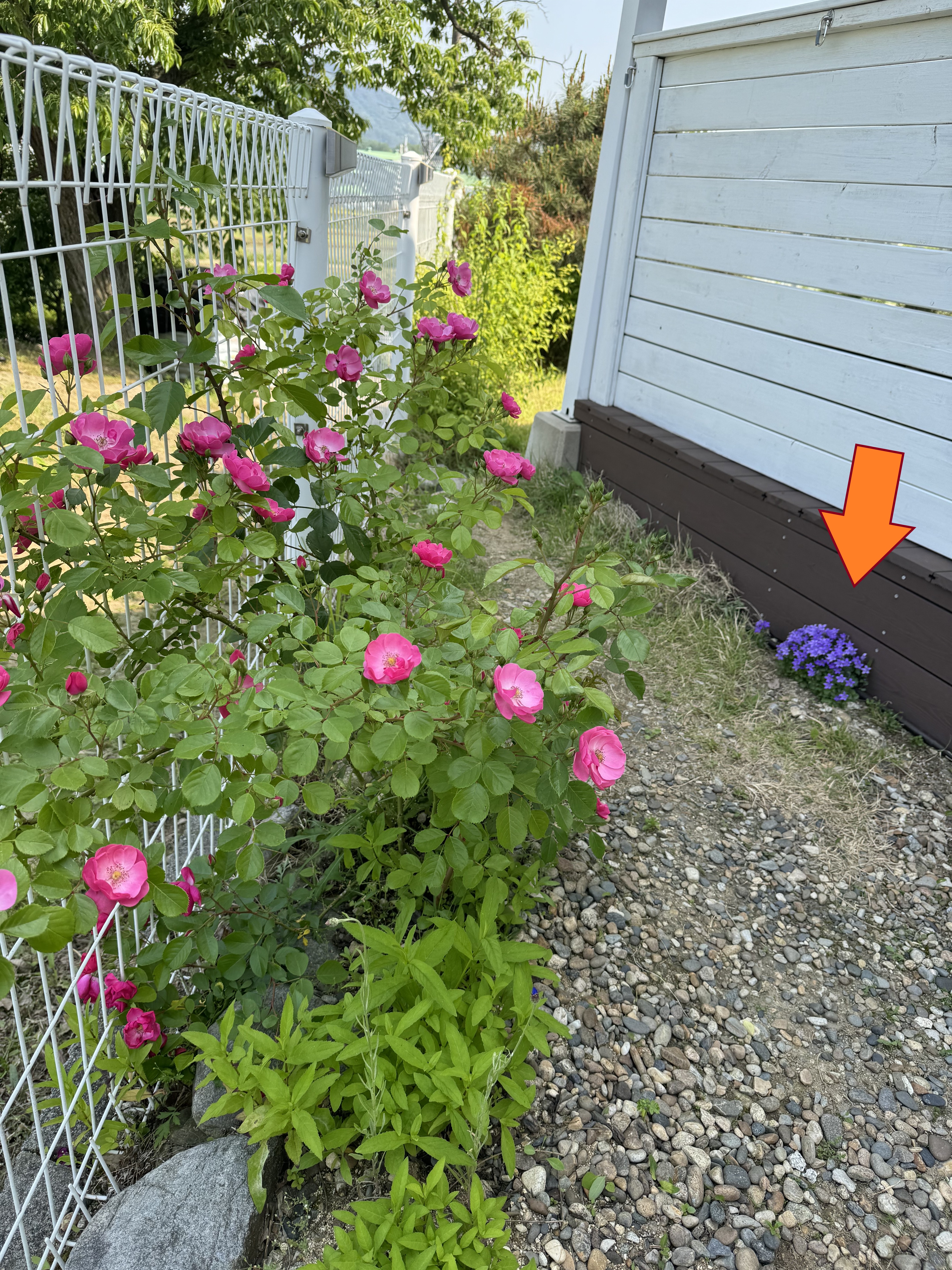 화려한 장미 옆에서도 그 아름다움이 뒤쳐지지 않는 캄파눌라 입니다(노란색 화살표)