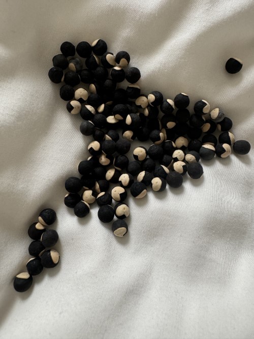 풍선이 갈색으로 변하면 빠르게 떼어 채종 하면 됩니다. 꼬투리 속에는 아래 사진과 같이 2~3개 정도의 씨앗이 들어있습니다. 아직 다 마르지 않은 풍선을 까면 검은색 부분이 초록색으로 보입니다.