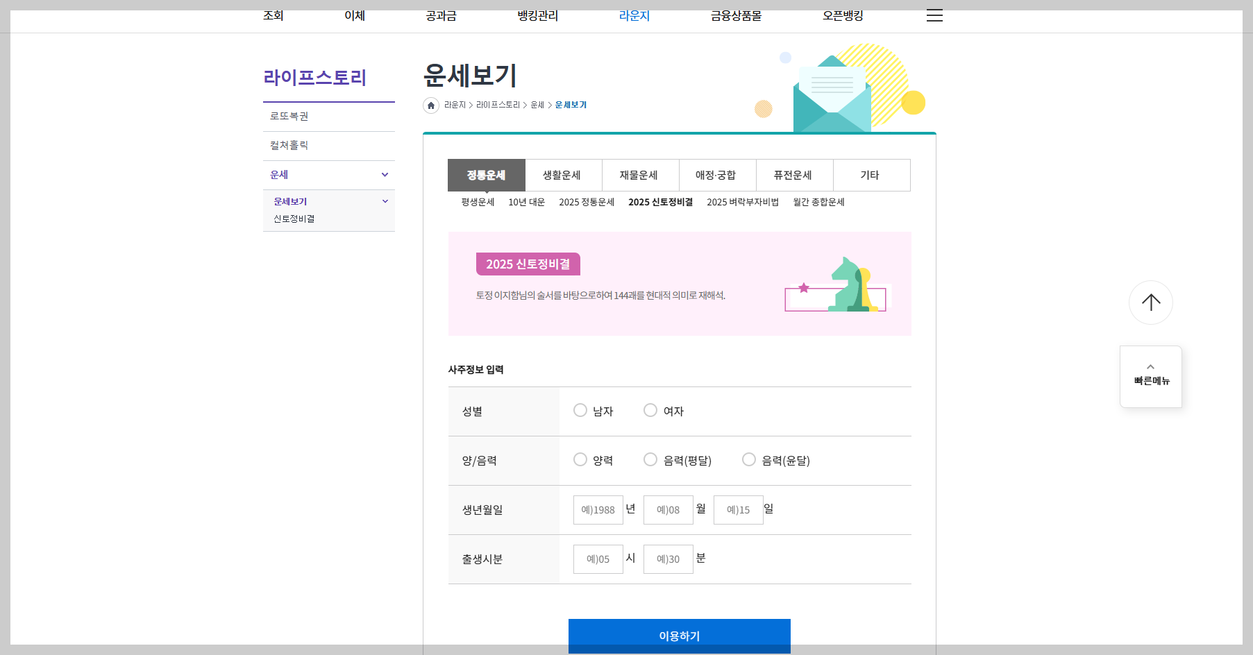 운세메뉴 찾기(2025년 정통운세, 신토정비결)