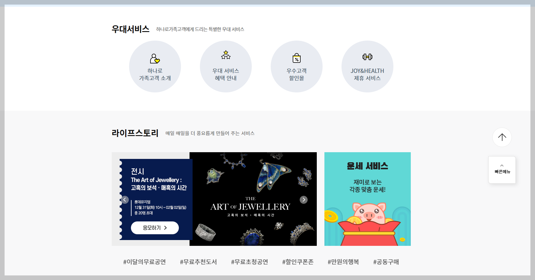아래로 스크롤을 내리시면 운세서비스로 진입할 수 있는 버튼이 보입니다. 확인해 주세요.